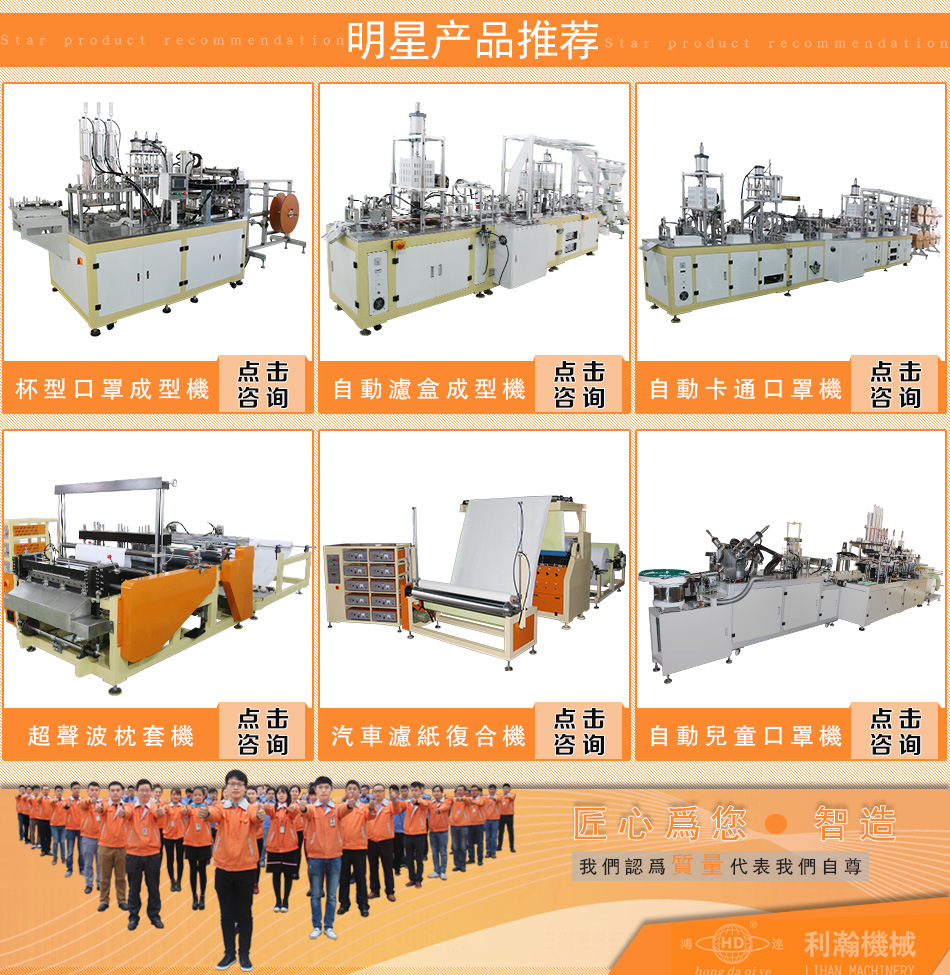 全主動杯型口罩耳帶點焊機利瀚公司精心研發代表行業界的新效果,是現在行業界先進的杯型口罩主動化設備,該設備代表世界先進的科研效果。