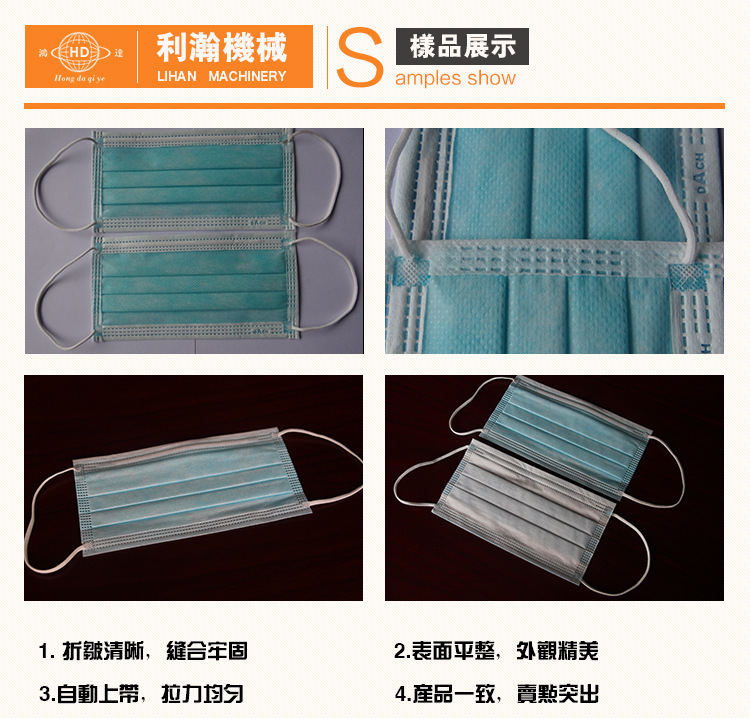 “鴻達(dá)牌”一拖二平面口罩外耳連線機(jī),是為出產(chǎn)高端口罩的抱負(fù)設(shè)備,設(shè)備從質(zhì)料進(jìn)入到制品輸出,全程主動(dòng)作業(yè),削減口罩在出產(chǎn)過程人體的觸摸,然后輕松到達(dá)職業(yè)檢測(cè)規(guī)范,在產(chǎn)能方面到達(dá)較高的出產(chǎn)量;該機(jī)是三臺(tái)設(shè)備組成,即平面口罩本體機(jī)一臺(tái),外耳帶設(shè)備兩臺(tái),經(jīng)過程序控制,將口罩本體主動(dòng)傳送到耳帶焊接設(shè)備上, 然后到達(dá)全主動(dòng)化作業(yè),很大程度的降底了人工成本。