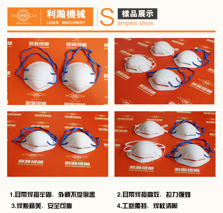 2.可用于平面、內耳帶/外耳帶、杯型口罩、鴨嘴型及其它異形口罩的焊接。