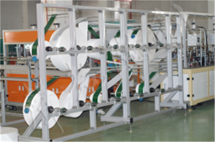口罩機(jī)是將多層無紡布通過熱壓成型,超聲波焊接,廢料切除等工序制造出具有一定過濾性能的各種口罩,口罩設(shè)備不是單臺(tái)的機(jī)器,它需要多臺(tái)機(jī)器的配合完成各種不同的工序。